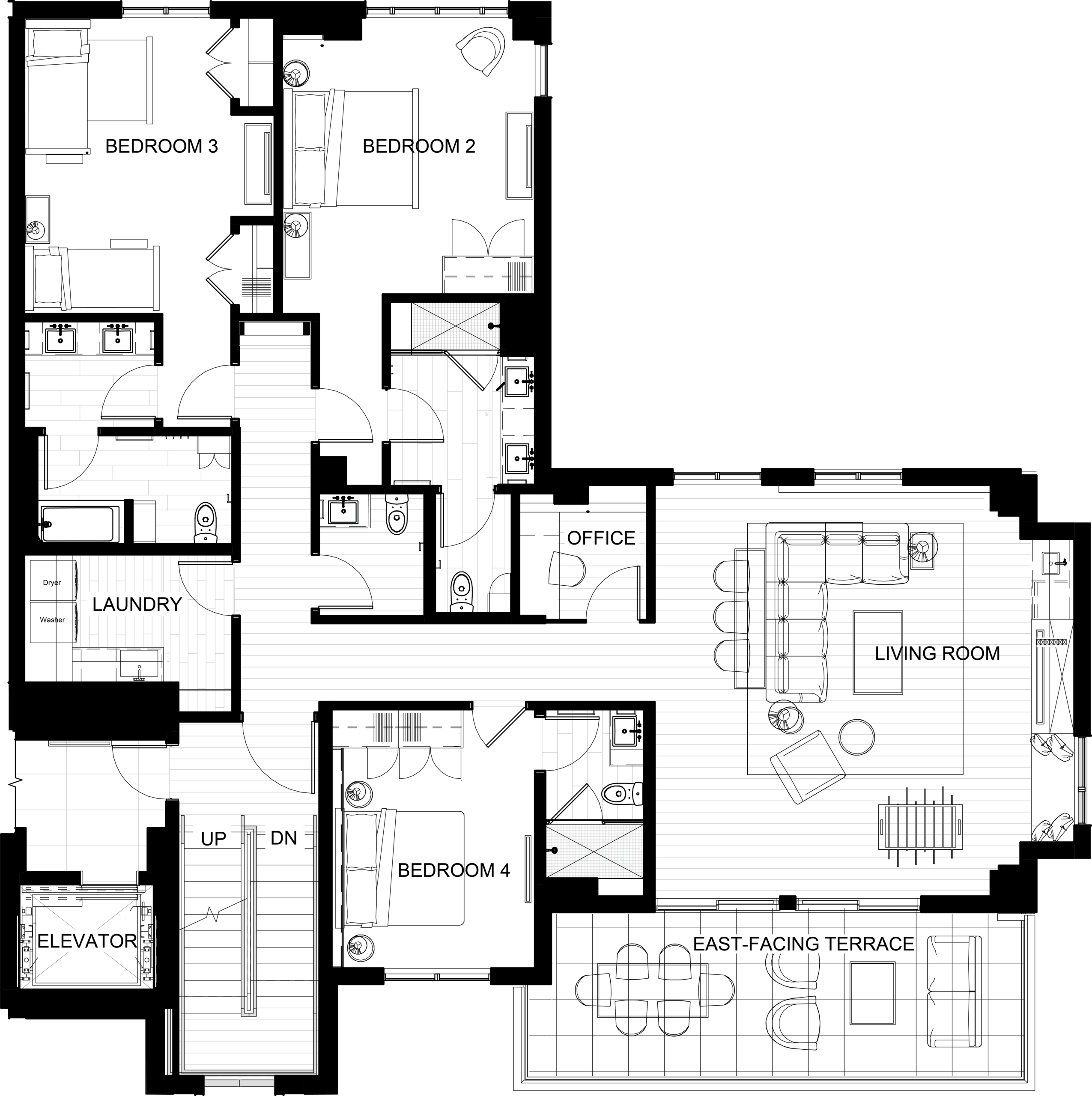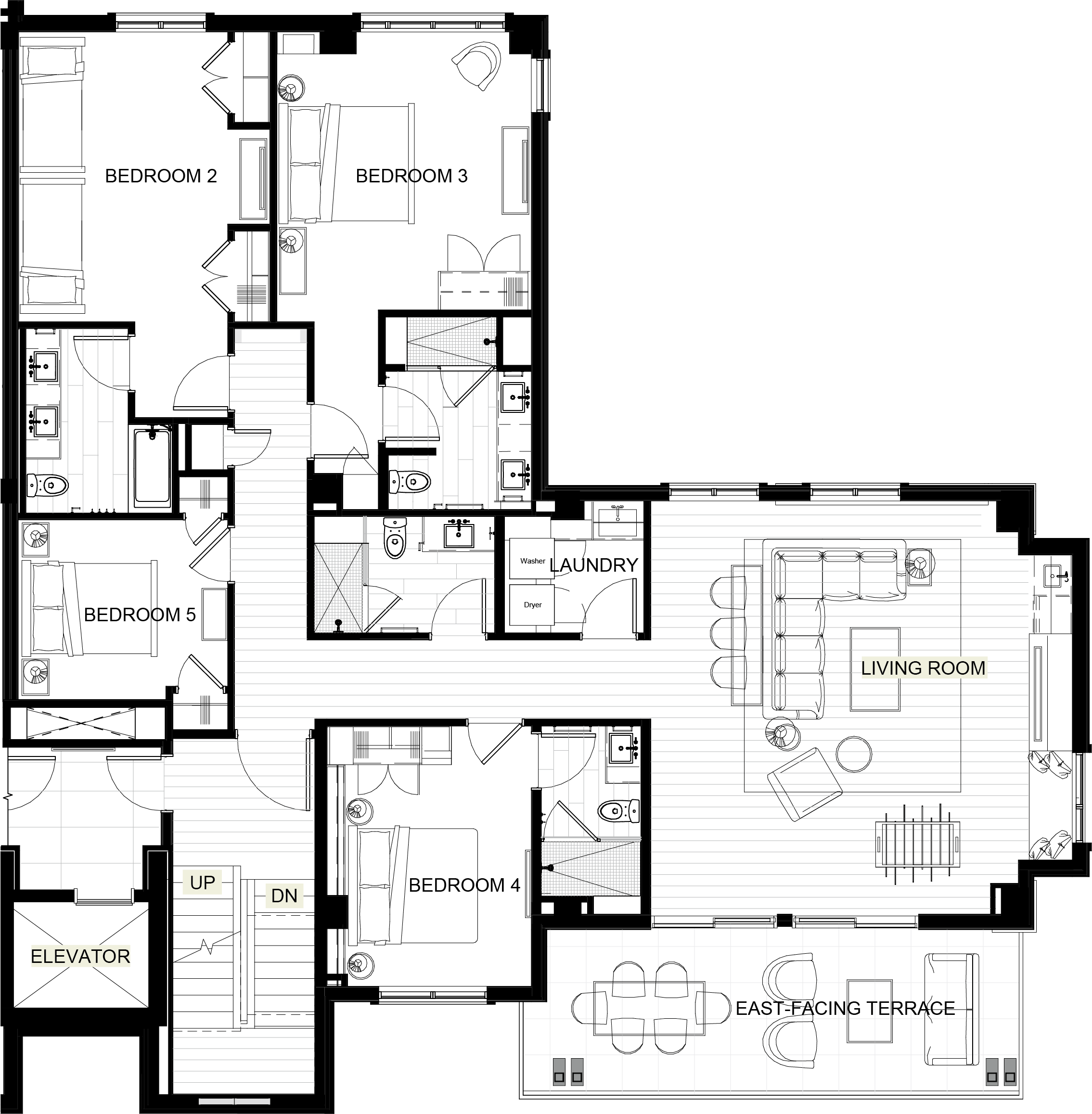 - Residences have direct elevator access